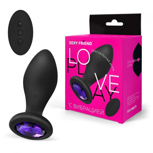Пробка c фиолетовым кристаллом "Sexy Friend" на дистанционном управлении, черная, S