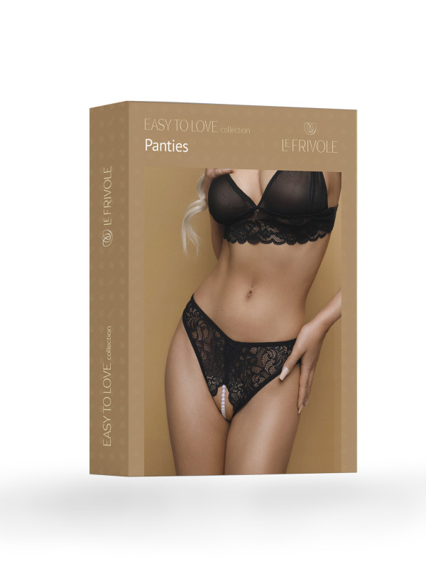 Трусики открытые с жемчужной нитью "Le Frivole" черные, S/M