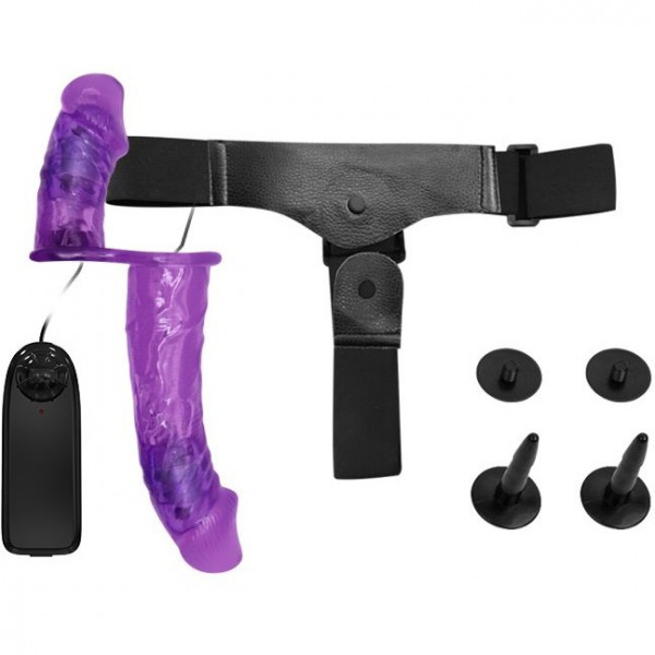 Страпон с вагинальной втулкой "Ultra Passionate Harness" с вибрацией, фиолетовый