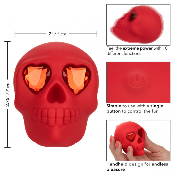 Восхитительный мини вибратор "Bone Head" в виде красного черепа с глазами кристаллами - отличный девайс для совершенно новых ощущений и самых невероятных кульминаций!